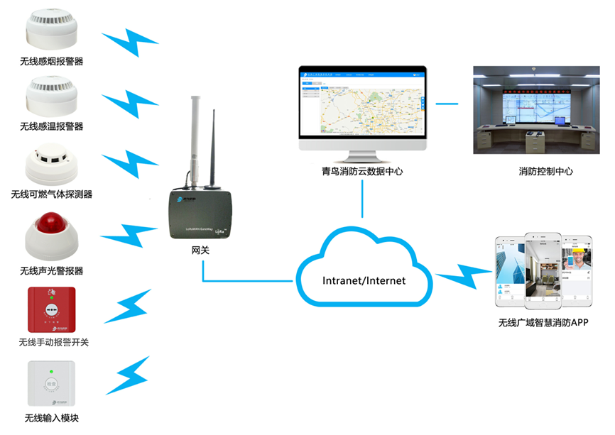 采用基于物聯(lián)網(wǎng)技術(shù),運用云計算、大數據的全新智慧防火系統解決方案,在建筑物內配備健全的物聯(lián)網(wǎng)化的消防設備,實(shí)時(shí)在線(xiàn)監測現場(chǎng)消防設備的運行情況,可將所有火警信息通過(guò)有線(xiàn)或4G網(wǎng)絡(luò )(由于校園網(wǎng)通常為內部專(zhuān)網(wǎng),網(wǎng)關(guān)無(wú)法自動(dòng)獲取IP地址,因此推薦網(wǎng)關(guān)選擇4G作為上行信道)直接上傳至青鳥(niǎo)消防云平臺,平臺將報警信息通過(guò)手機APP、電話(huà)、短信等方式及時(shí)通知相關(guān)負責人,便于消防隱患及時(shí)處置,能夠真正的提高校園消防安全管理的能力,有效防范火災事故的發(fā)生,極大程度地保障校園學(xué)生的生命和財產(chǎn)安全。